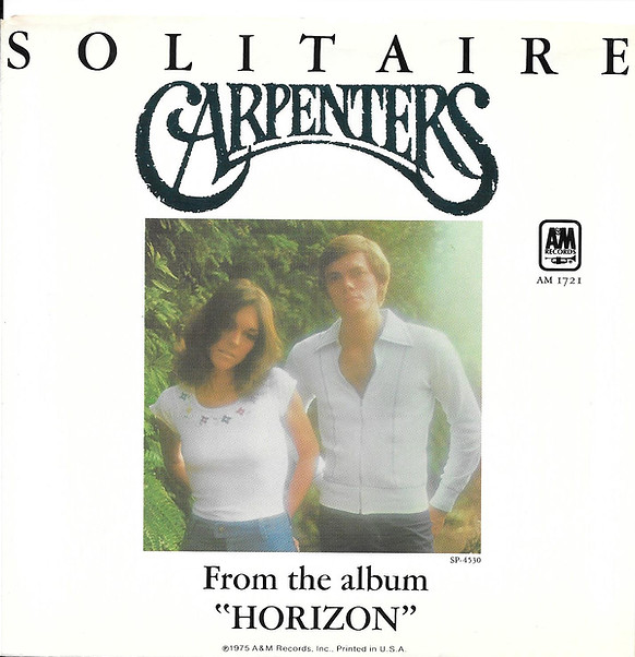 Released on July 18, 1975, "Solitaire" would be their lowest charting single, reaching only number 17 on September 20, 1975. That week, number 16 was "Dance With Me" by Orleans and the number one song was "Fame" by David Bowie. It was their 12th number one on the Adult Contemporary chart.